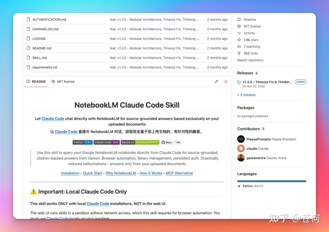 4、NotebookLM skill能在 Claude Code 里面直接和 NotebookLM 对话,并上传 PDF 直接到 NotebookLM。  地址: https://github.com/PleasePrompto/notebooklm-skill