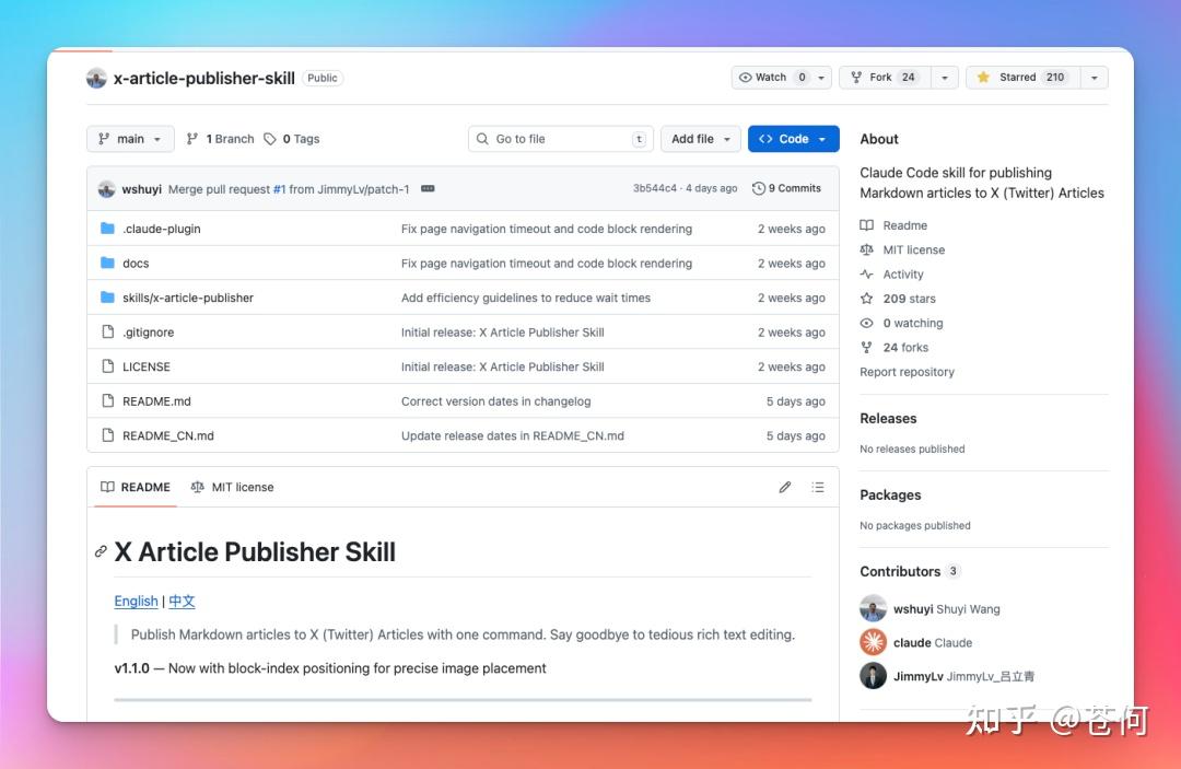 3、X Article Publisher Skill可以很方便的用来写 X 文章,早就有这个痛点,没想到这么快就有对应的工具了。  地址: https://github.com/wshuyi/x-article-publisher-skill